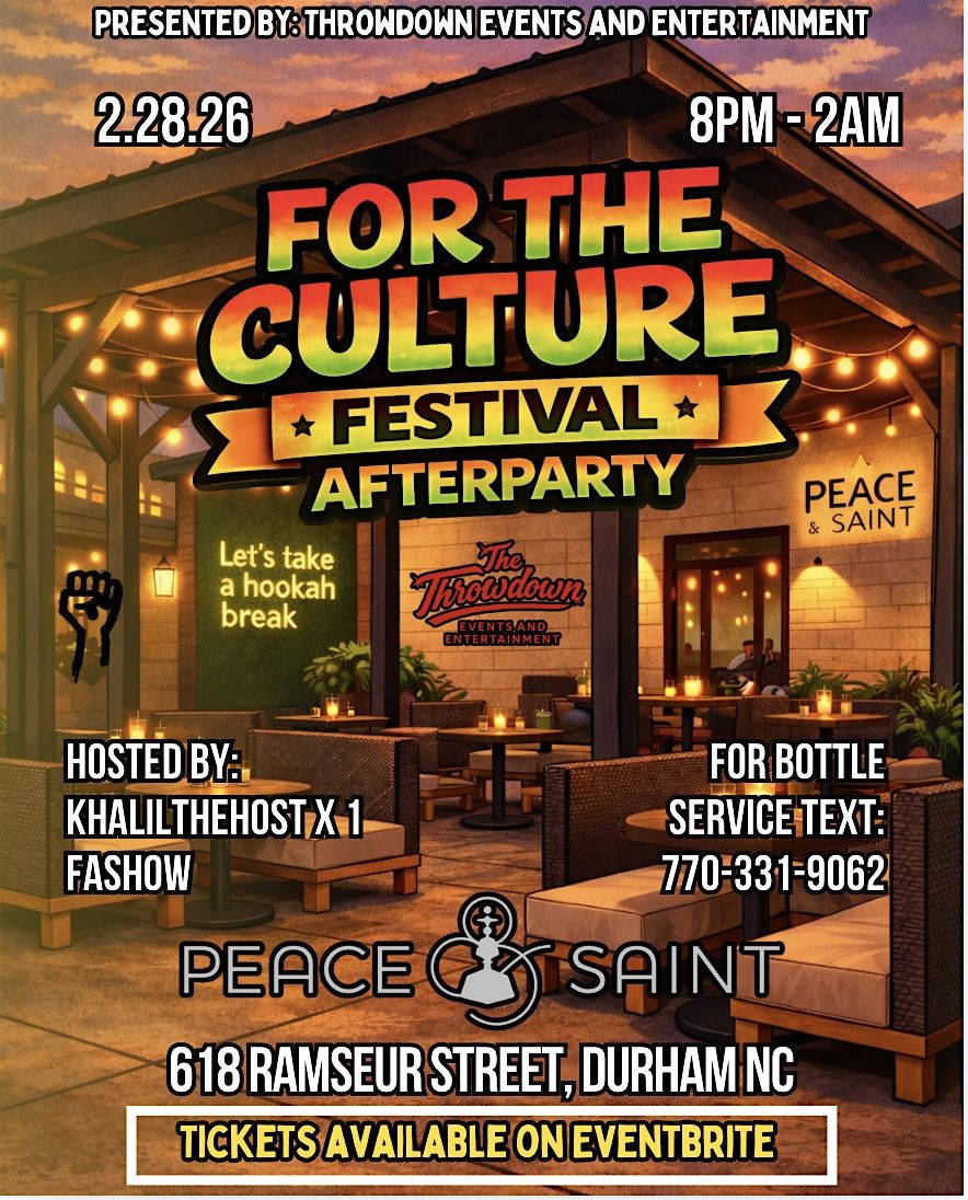 Get ready to dive into an amazing celebration of art, music, and community vibes. This in-person event is all about embracing culture, connecting with awesome people, and having a blast. Whether you're into live beats, creative showcases, or just good times, DURHAM- For the Culture Festival is where you wanna be. Don't miss out on this epic gathering that brings the city's spirit to life!