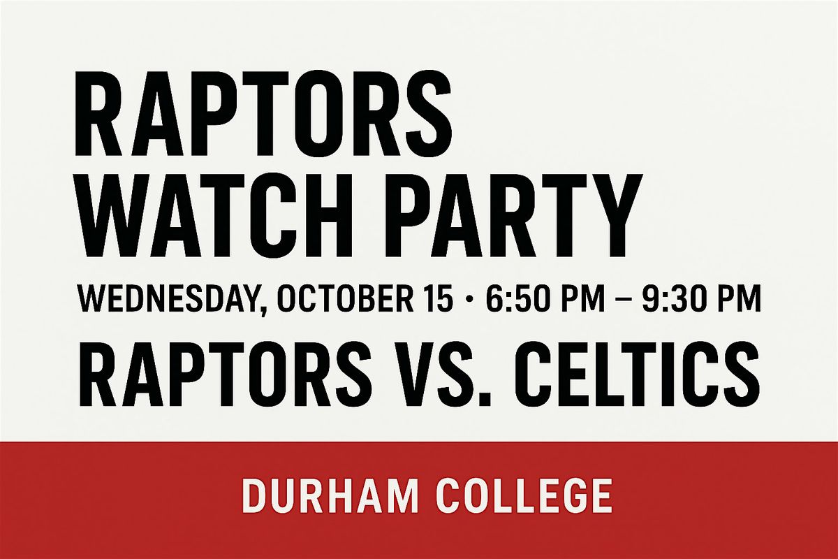 Join us for an exciting evening filled with basketball, cheers, and good company. Whether you're a die-hard Raptors fan or just looking for a fun night out, this event is perfect for you. Come down to Durham College and watch the game on a big screen with fellow fans. Don't miss out on the chance to experience the thrill of the game live with us!