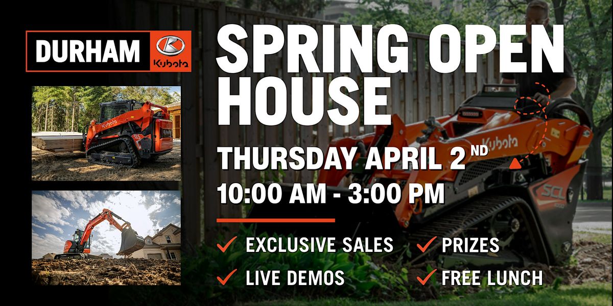 We’re keeping the day productive and casual with seminars designed to help you get more out of your gear and a free lunch to keep you fueled. Stop by to take advantage of our current event deals, connect with industry reps, and enter for your chance to win one of our door prizes. From compact tractors to excavators, come see how Durham Kubota is here to help you work smarter this spring.