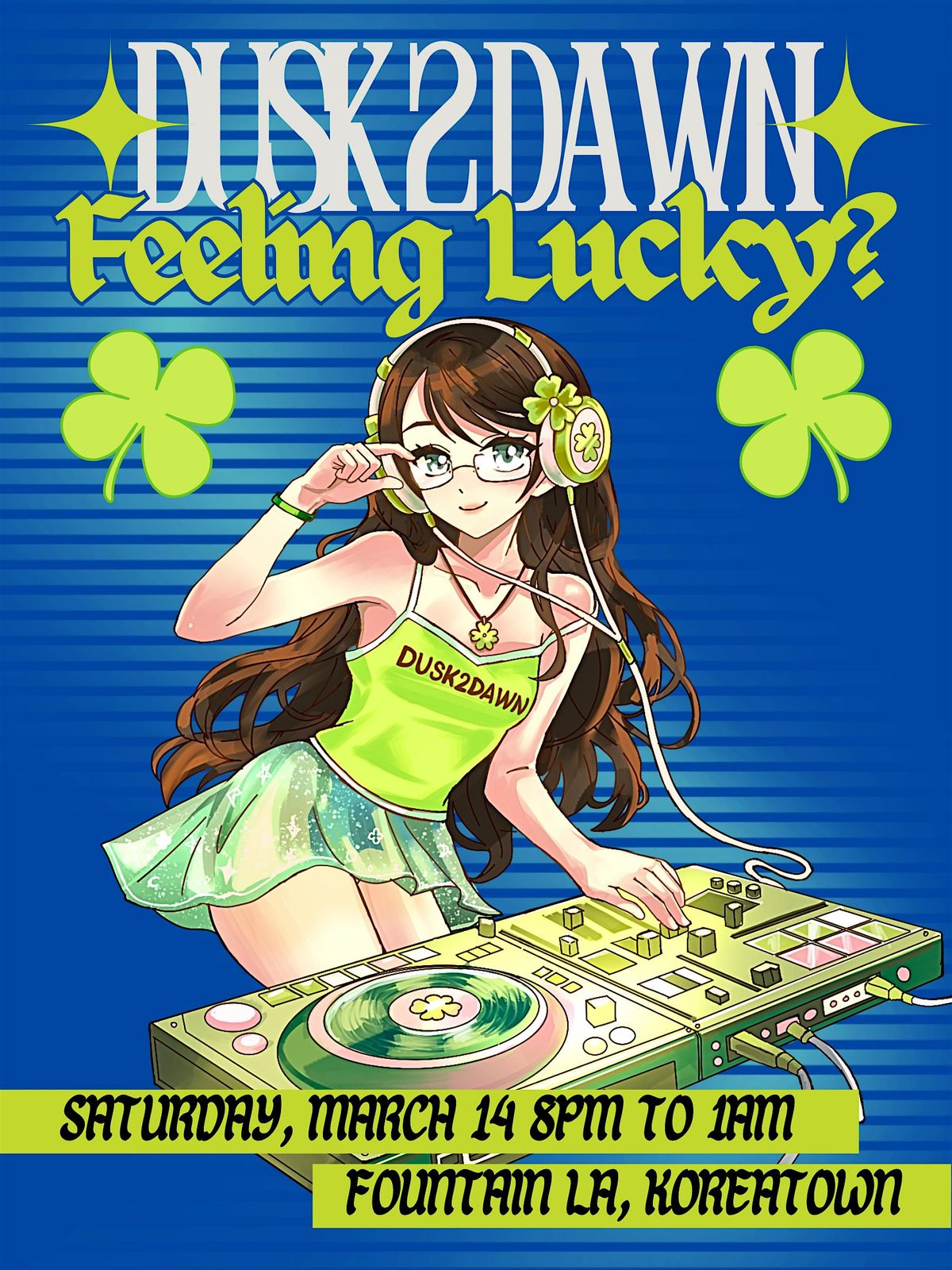 We’re turning the dance floor GREEN for the ultimate St. Patty’s day celebration! Come find the pot full of bangers at DUSK2DAWN: FEELING LUCKY? ☘️SATURDAY, MARCH 14th AT FOUNTAIN LA IN KOREATOWN!