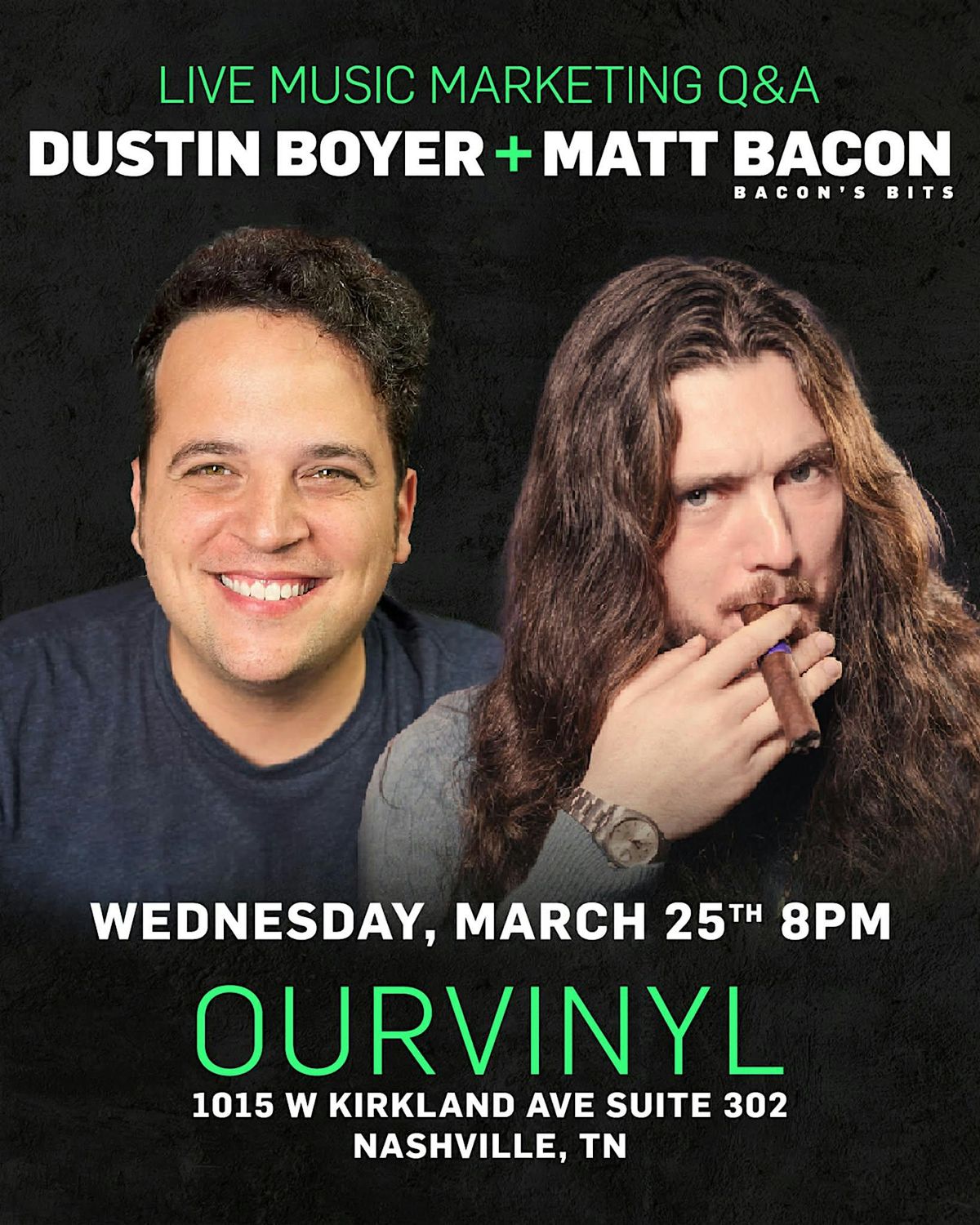 Dustin Boyer and Matt Bacon of the My .4 Cents podcast are coming to speak in Nashville at OurVinyl! Join us for a music biz Q&A!