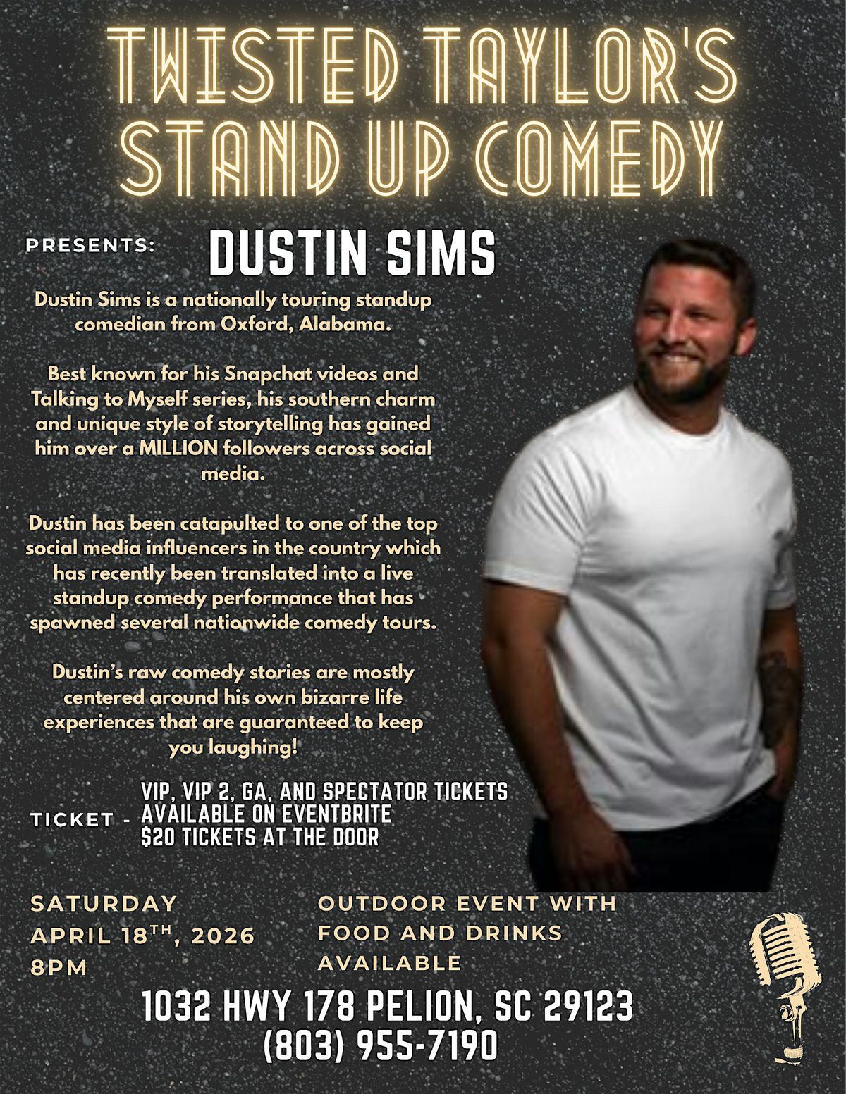 DUSTIN SIMS has taken stages by storm with his story-telling hilarious life experiences. He puts the FUN in FUNNY in all of his performance