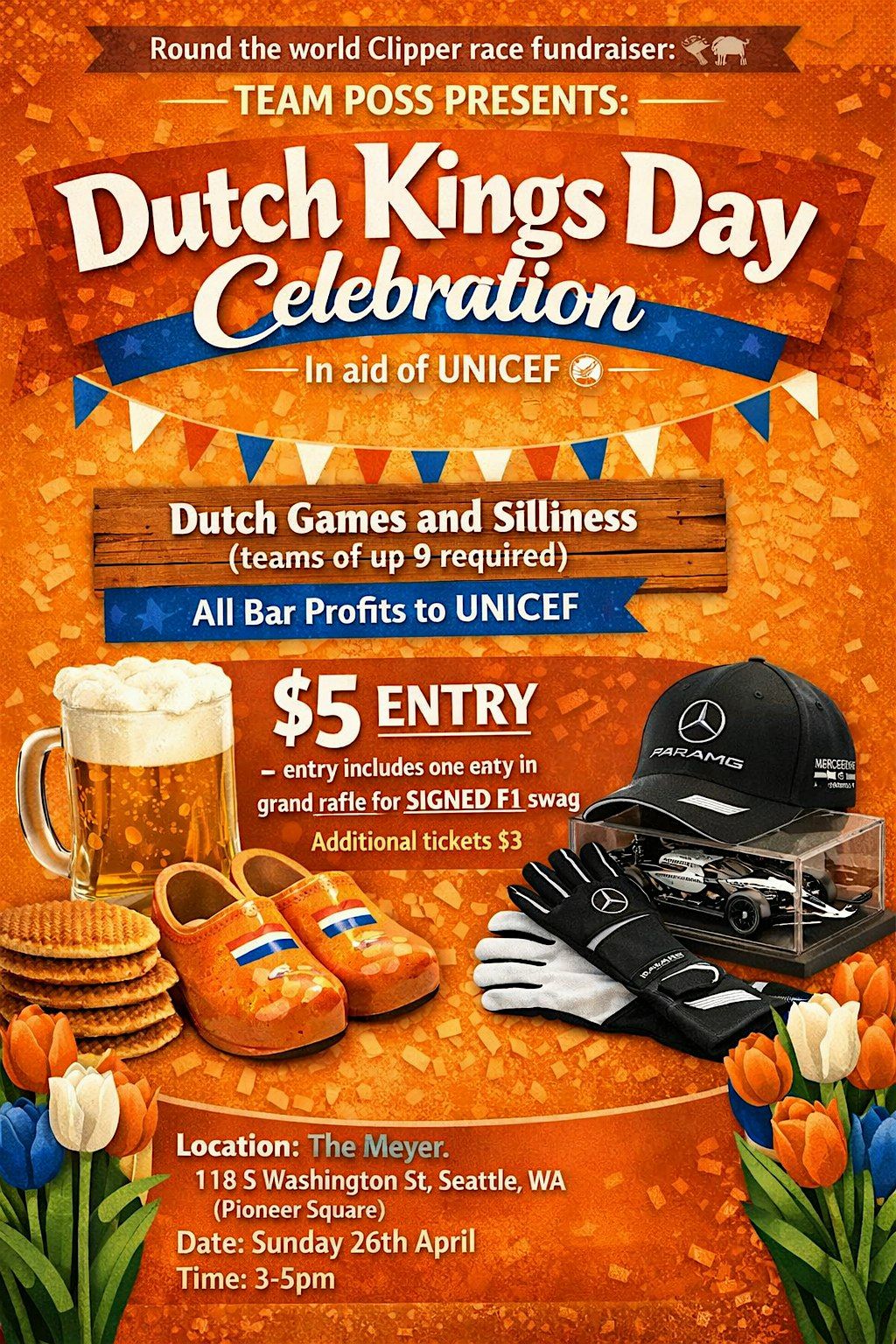 Taking place from 3β5pm at The Meyer in Pioneer Square, teams of 9 will go head-to-head in a series of classic Dutch games. Be sure to wear your best orange to fully embrace the theme!