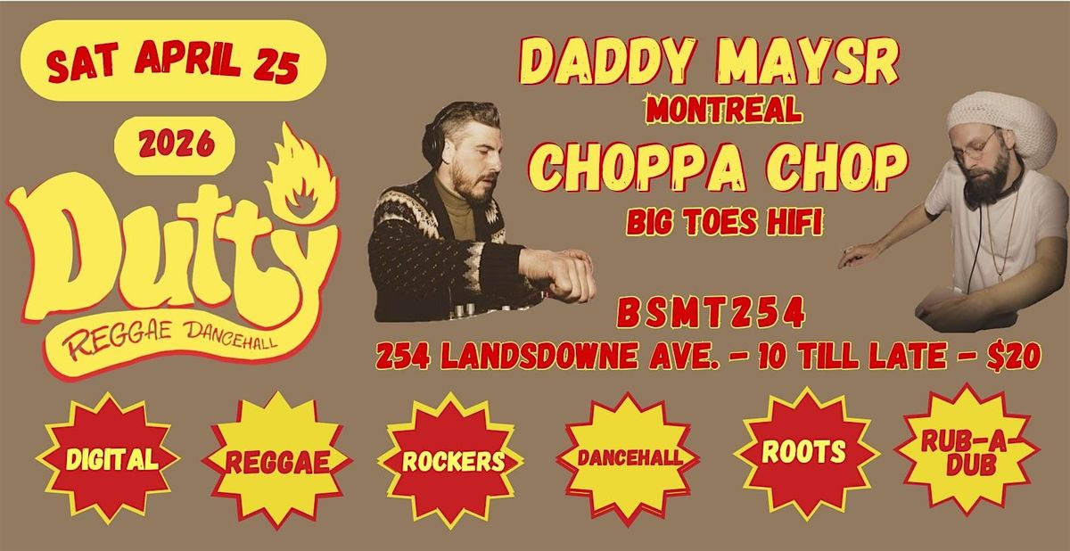 All the best music from Jamaica and beyond brought to you by top notch guest selectors alongside DUTTY'S own CHOPP CHOP...everytime.