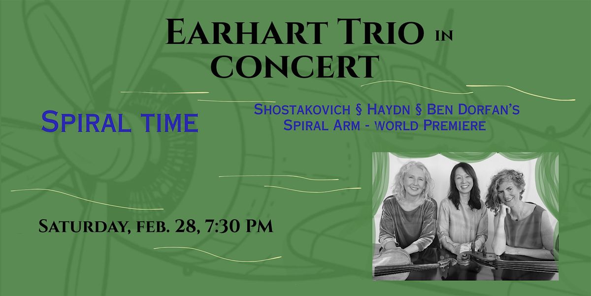 Music performed on this evening include the celebrated second piano trio by Dmitri Shostakovich, the whimsical Gypsy piano trio by Joseph Haydn, and the world premiere of a work that was commissioned for the Earhart Trio titled SPIRAL ARM composed by Ben Dorfan.