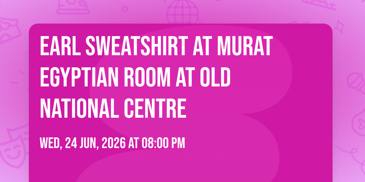 🌟 Be part of history at Earl Sweatshirt at Murat Egyptian Room at Old National Centre, an extraordinary gathering that will captivate your imagination! 🏛️ The prestigious Murat Egyptian Room at Old National Centre in Indianapolis, IN sets the stage for an unforgettable experience on June 24th, 2026 at 08:00 PM. ✨ They are bringing together the finest elements of entertainment and innovation to create moments that will take your breath away. From the moment you arrive, you'll be immersed in an atmosphere of wonder and excitement. 🎯 This carefully planned event ensures every guest experiences something truly special. 🎊 Early booking is recommended for this must-attend event of the season!