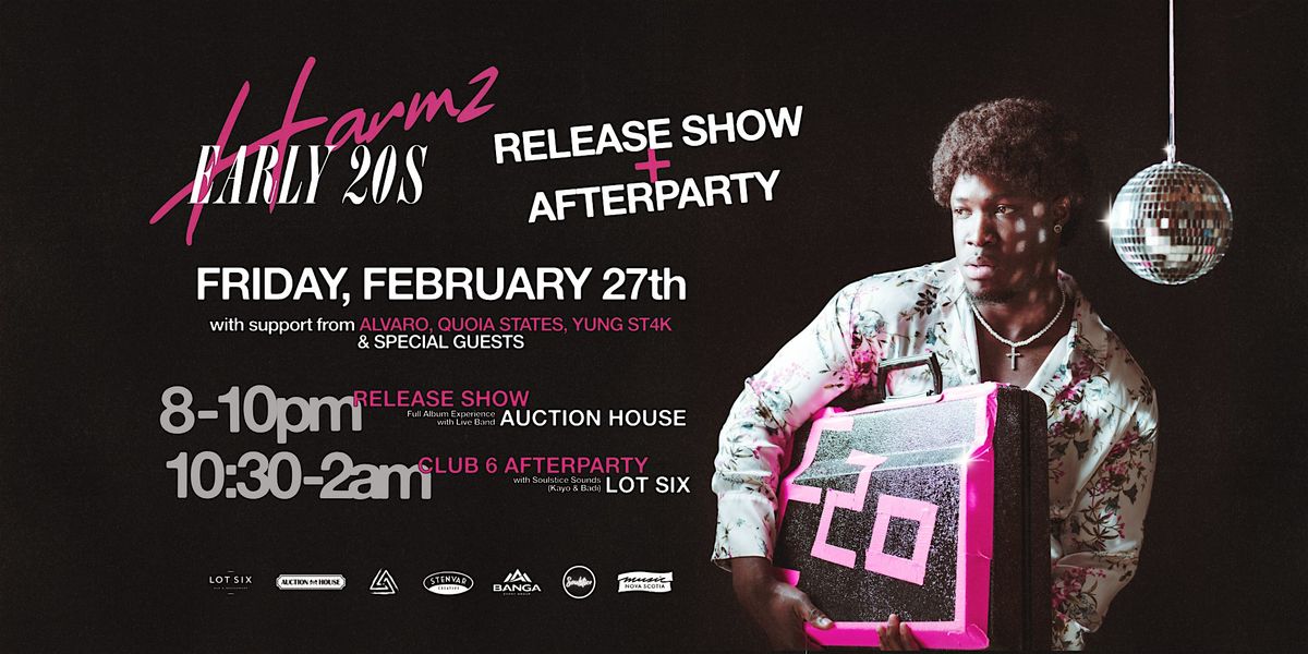Join us for a unique downtown experience celebrating the release of HARMZ's album Early 20s with a full night of showmanship, extravagance and comraderie. With support from PRZM collaborators Alvaro, Quoia States and Yung St4k, HARMZ will be performing material from the new album accompanied by a full live band and special guests. Following this show, the crowd will move down the street to Lot Six, where Kayo and Badi will be hosting a special edition of Club 6 to commemorate the release. This type of event will only happen this once in Halifax, so don't miss your chance to witness this experience!