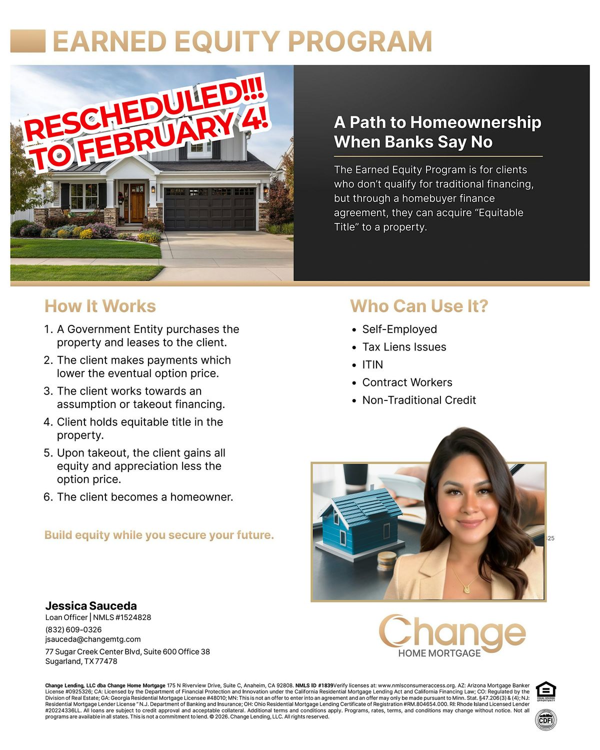 Ready to turn knowledge into opportunity? Join us for an Earned Equity Program session with Jessica Sauceda and learn how to help clients build wealth through smart real estate strategies.