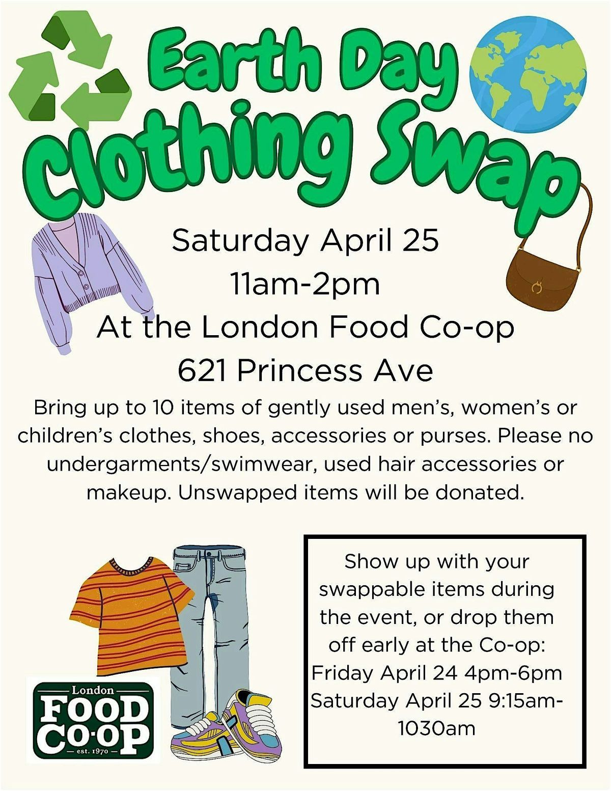 Bring in up to 10 items of clean, gently used men's, women's and children's clothing, shoes, accessories, jewelry and purses, and leave with up to 10 new-to-you items! Please no swimwear, undergarments, used hair accessories or make-up.