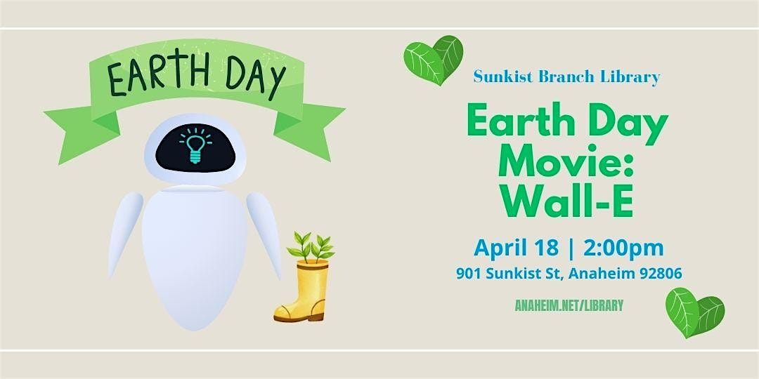 Celebrate Earth Day with a screening of Disney's Wall-E, popcorn, and crafts.