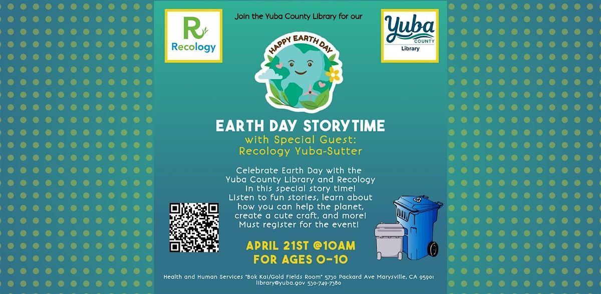 Celebrate Earth Day with the Yuba County Library and Recology in this special story time! Listen to fun stories, learn about how you can help the planet, create a cute craft, and more! Must register for the event as spaces are limited!