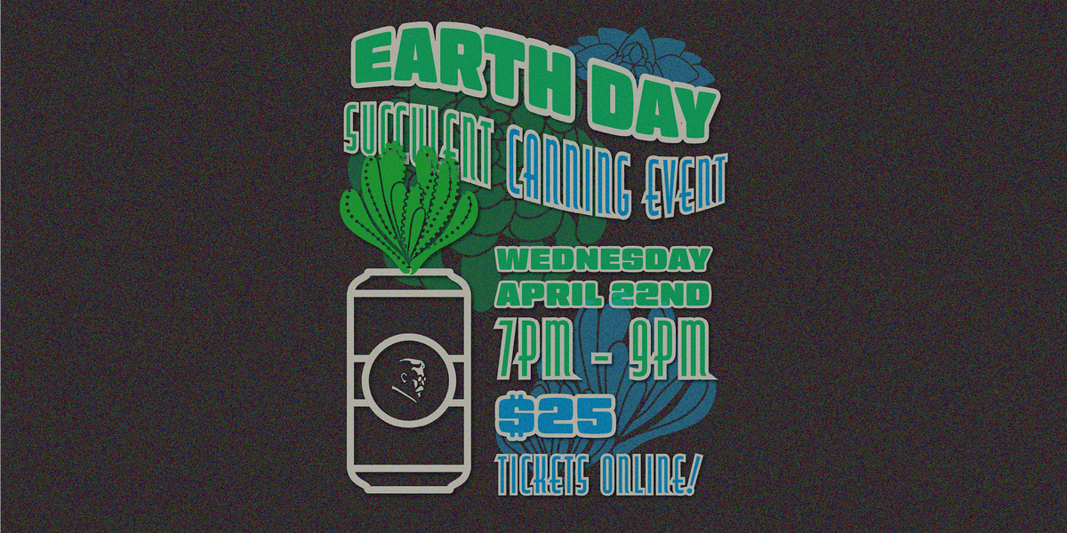 Come celebrate Earth Day with us on Wednesday, April 22nd, from 7PM - 9PM! We will be planting succulents in our favorite beer cans right here at the taproom! $25 gets you a beer can of your choice (exclusions apply), a succulent, & planting materials.