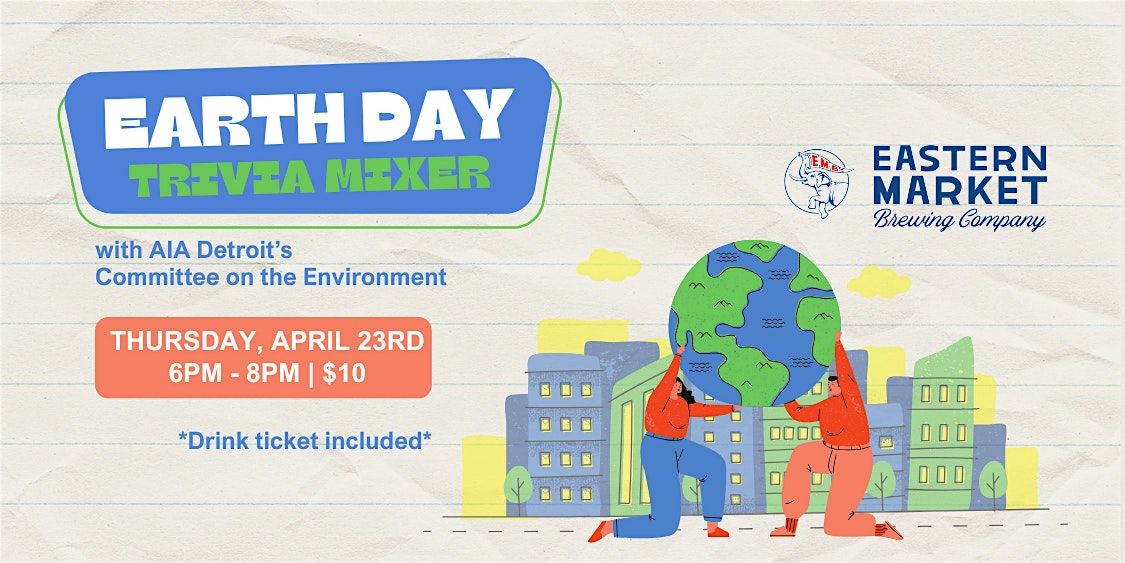 Join the AIA Detroit Committee on the Environment (COTE) for a fun and casual Earth Day Trivia Mixer at Eastern Market Brewing Company. Architects, designers, and sustainability enthusiasts are invited to test their knowledge with trivia focused on sustainability, the built environment, climate, and a few general Earth Day surprises along the way.
