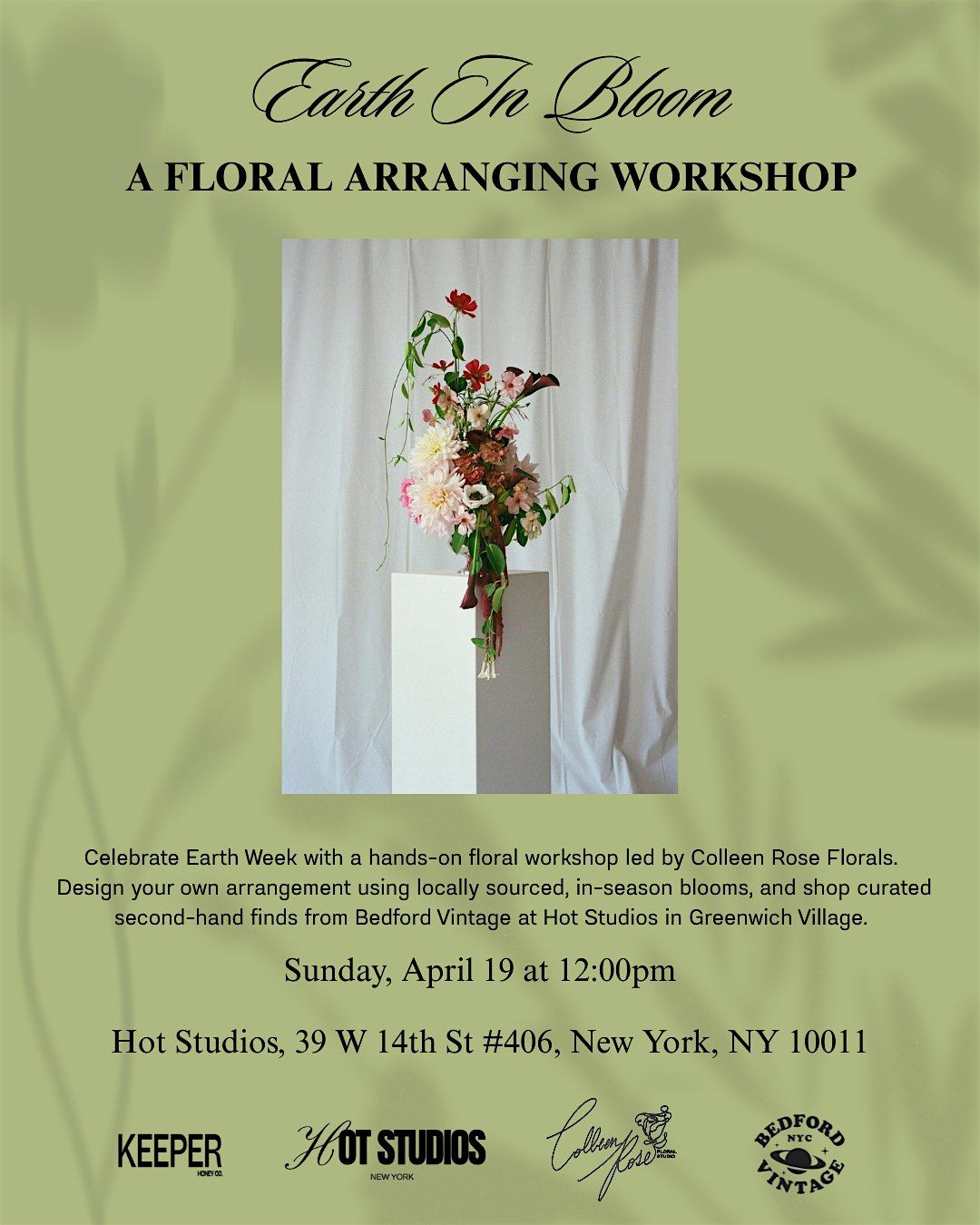 Join us for a hands-on floral arranging workshop on Sunday, April 19 from 12:00 - 2:00pm in celebration of Earth Week! Under the guidance of me (Colleen), you’ll create your own arrangement using locally sourced, in-season blooms, learning techniques to make your designs effortlessly beautiful and sustainable.