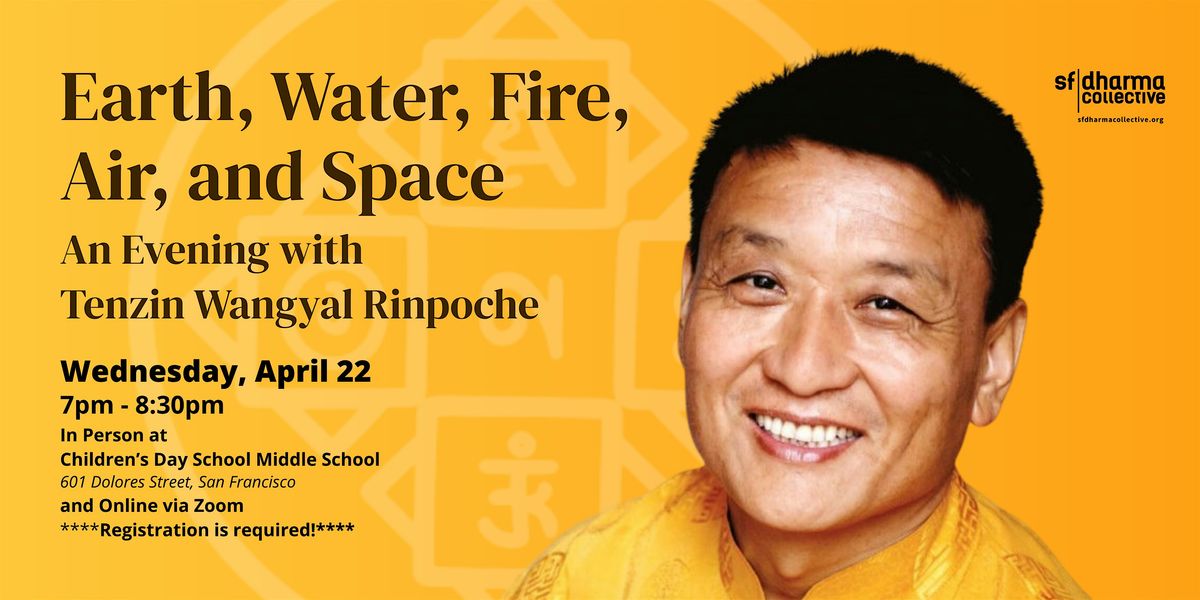 On this Earth Day evening, join Tenzin Wangyal Rinpoche, internationally renowned teacher, accomplished author, and lineage holder in the Tibetan Bön tradition, for a special gathering hosted by SF Dharma Collective.