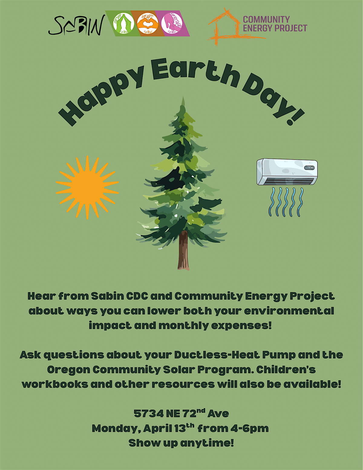 Community Energy Project and Sabin CDC welcome you to this fun and informative session all about how Community Solar (in English and Spanish) can help you save on your utility bills at no cost to you! This is open to all Oregon residents if you are a home owner, rent, or live a non-traditional home. No solar panels installed, community driven electric production, and for PGE & Pacific Power utility customers. Whether you're curious about how it works or want to see if it’s right for you, this in-person informational session breaks it down in simple terms. Perfect for anyone looking to cut costs on their electric bill and go green without the hassle. Don't miss out on learning easy ways to boost your savings from solar to your home!