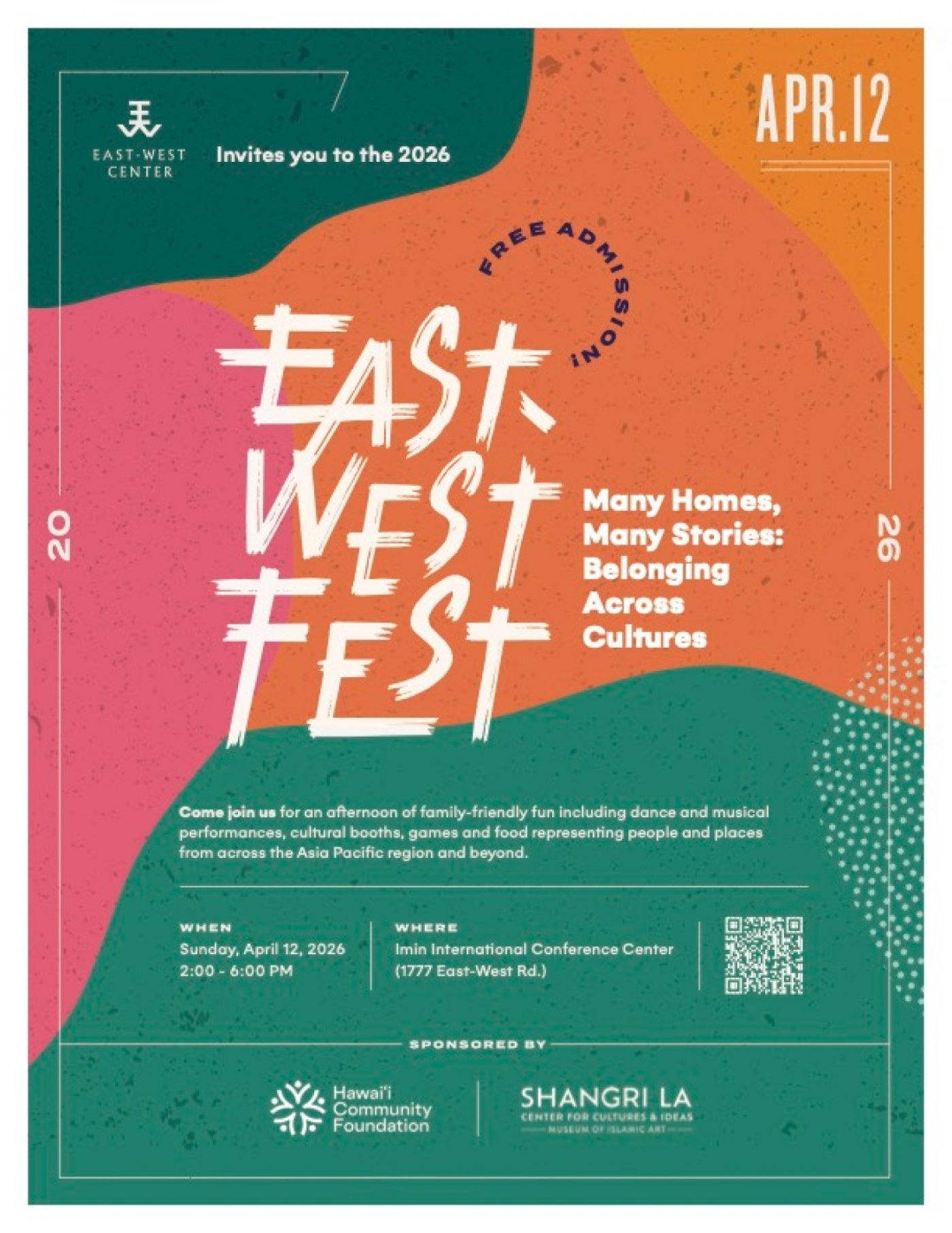 - Join us for an afternoon of family-friendly fun including dance and musical performances, cultural booths, games, storytelling and food representing people and places from across the Asia-Pacific region and beyond.
