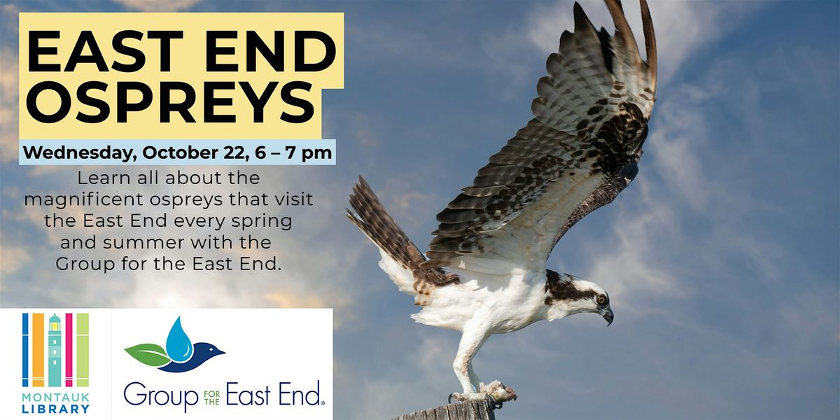 Learn all about the ospreys that visit the East End every spring and summer with the Group for the East End at the Montauk Library.About this Event