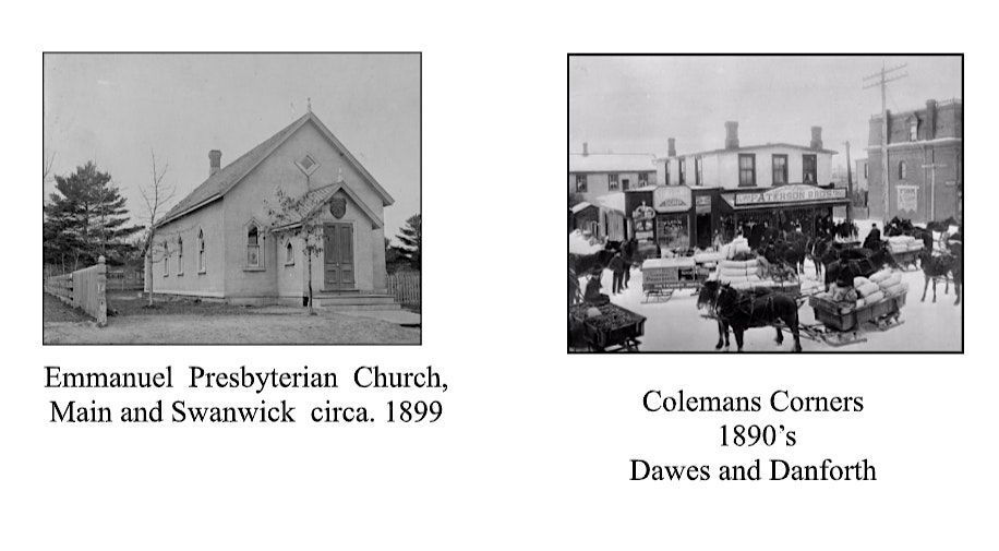 cornerstones of the upper Beach as it grew along The Kings Highway in the mid 1800’s. We will also look at Coleman’s Corners, Little York, and the founding of East Toronto Village, And the rise and fall of the mighty Grand Trunk Railroad.