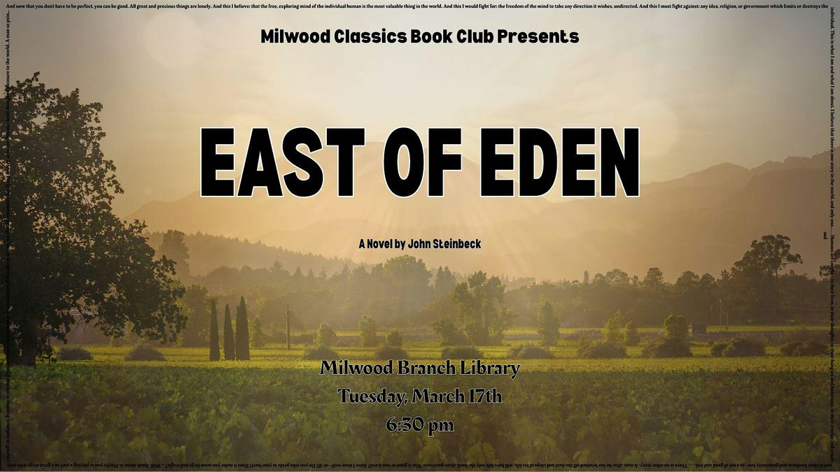 East of Eden is the book that John Steinbeck considered to be his best work. Many agree. Where The Grapes of Wrath explores American history and the problems of capitalism, East of Eden explores the balance between good and evil in an allegorical retelling of the story of Cain and Abel.