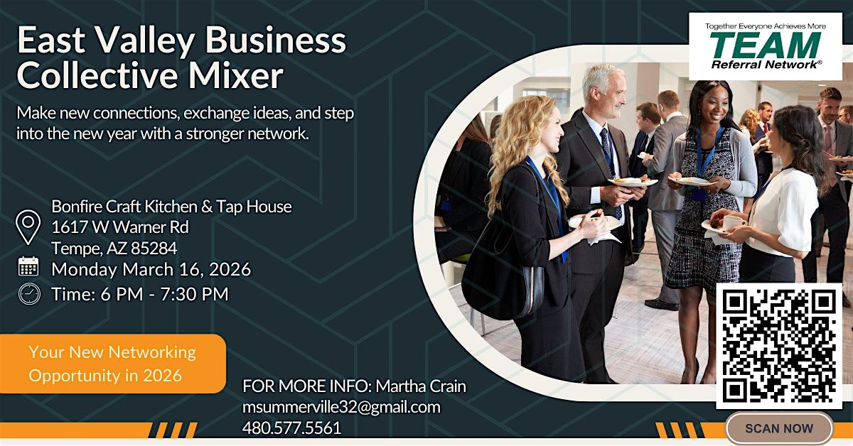 Join the East Valley Business Collective for a professional networking mixer designed to bring together local business owners and professionals committed to growth through trusted referrals.