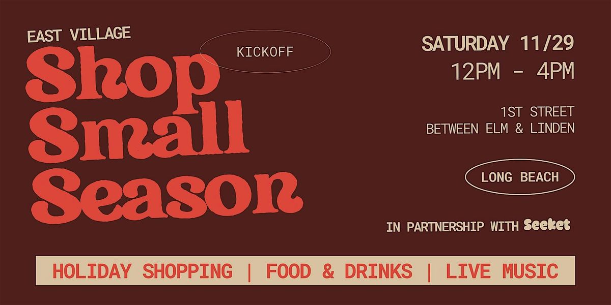 Shop small, party big! Join us Small Business Saturday 11/29 12–4 PM for the East Village Arts District x seeketlb.com Shop Small Season Kickoff Party on 1st St between Linden & Elm in Downtown LB with food, drinks, music, pop-ups, and holiday shopping galore!