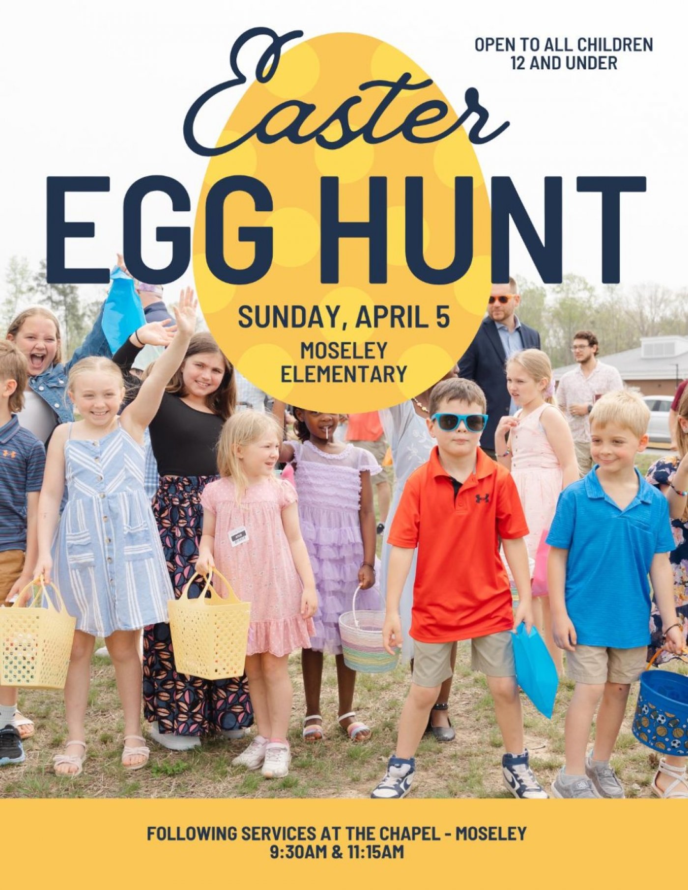 Everyone is invited to join us at Chapel Moseley for Easter Sunday services at 9:30 and 11:15 AM an Egg Hunt follows each service.