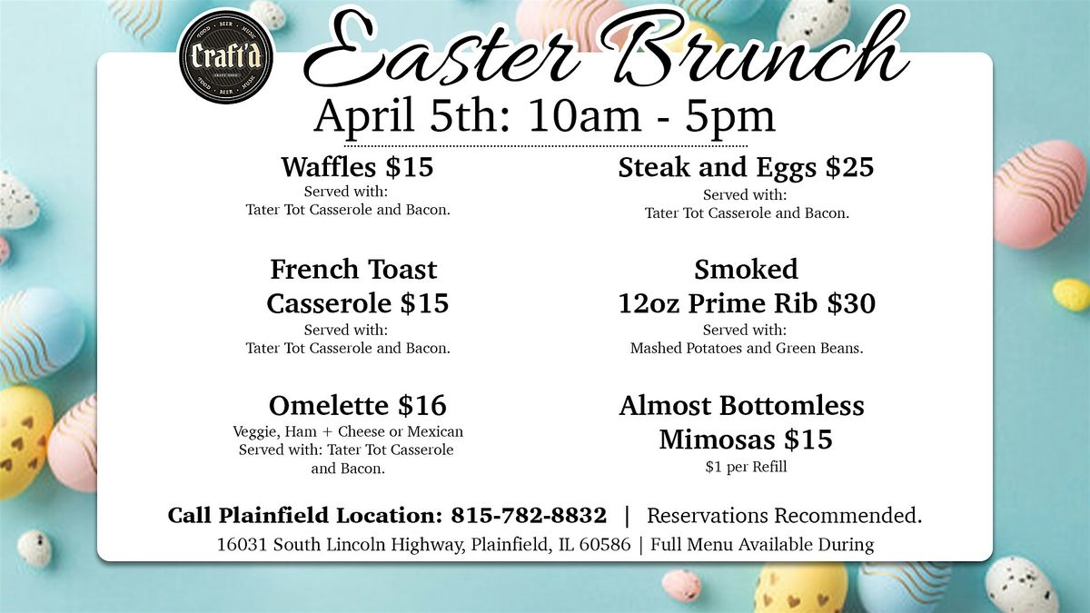Sunday 4/5/26 with seatings from 10 AM - 5 PM. Reservations recommended. Brunch Menu + Regular Menu will be available during open hours.About this Event