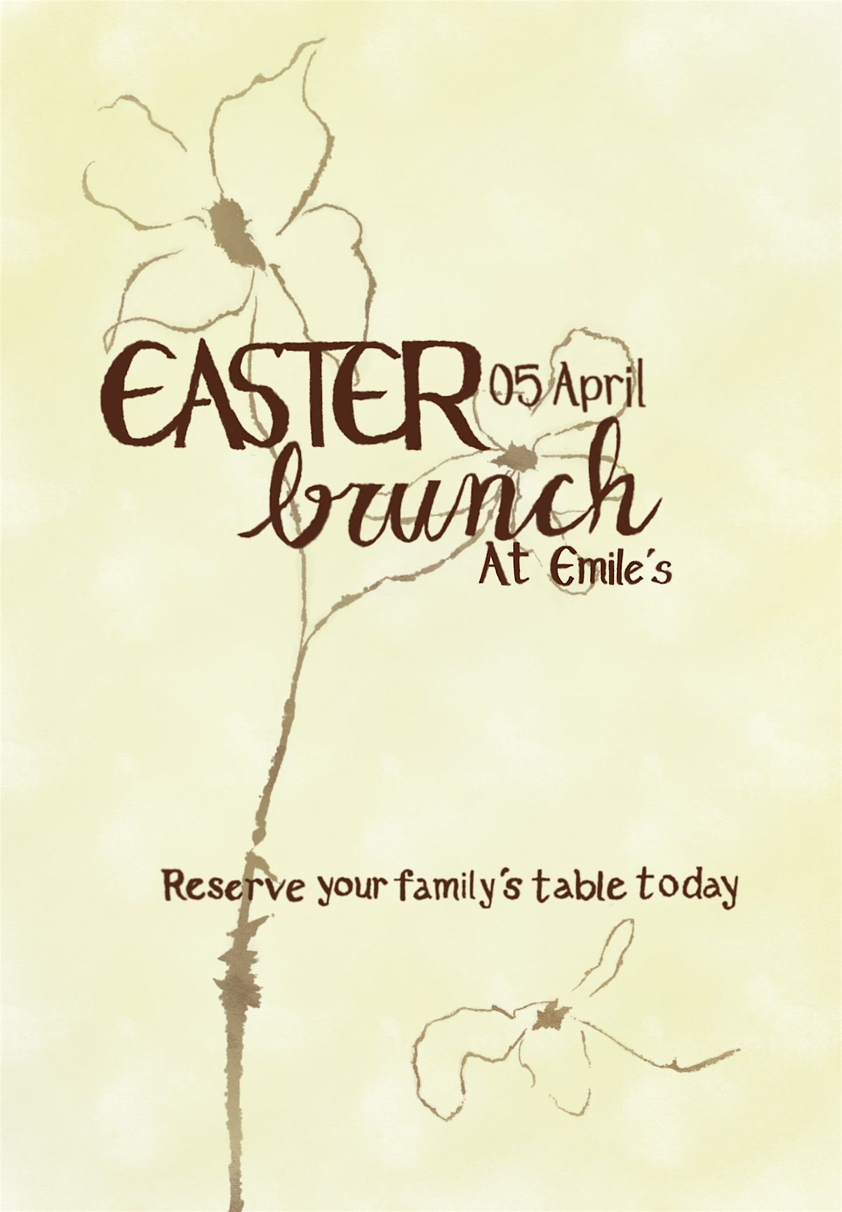 Join us for one of our seatings at 9:00, 9:30, 11:30, or 12:00 and enjoy a reserved space for you and your family & friends to gather. The menu will feature a spread of brunch classics, prepared to suit every tasteโfrom savory favorites to sweet treats. Mimosas and a selection of other specialty drinks will also be available, as well as coffee and other beverages.