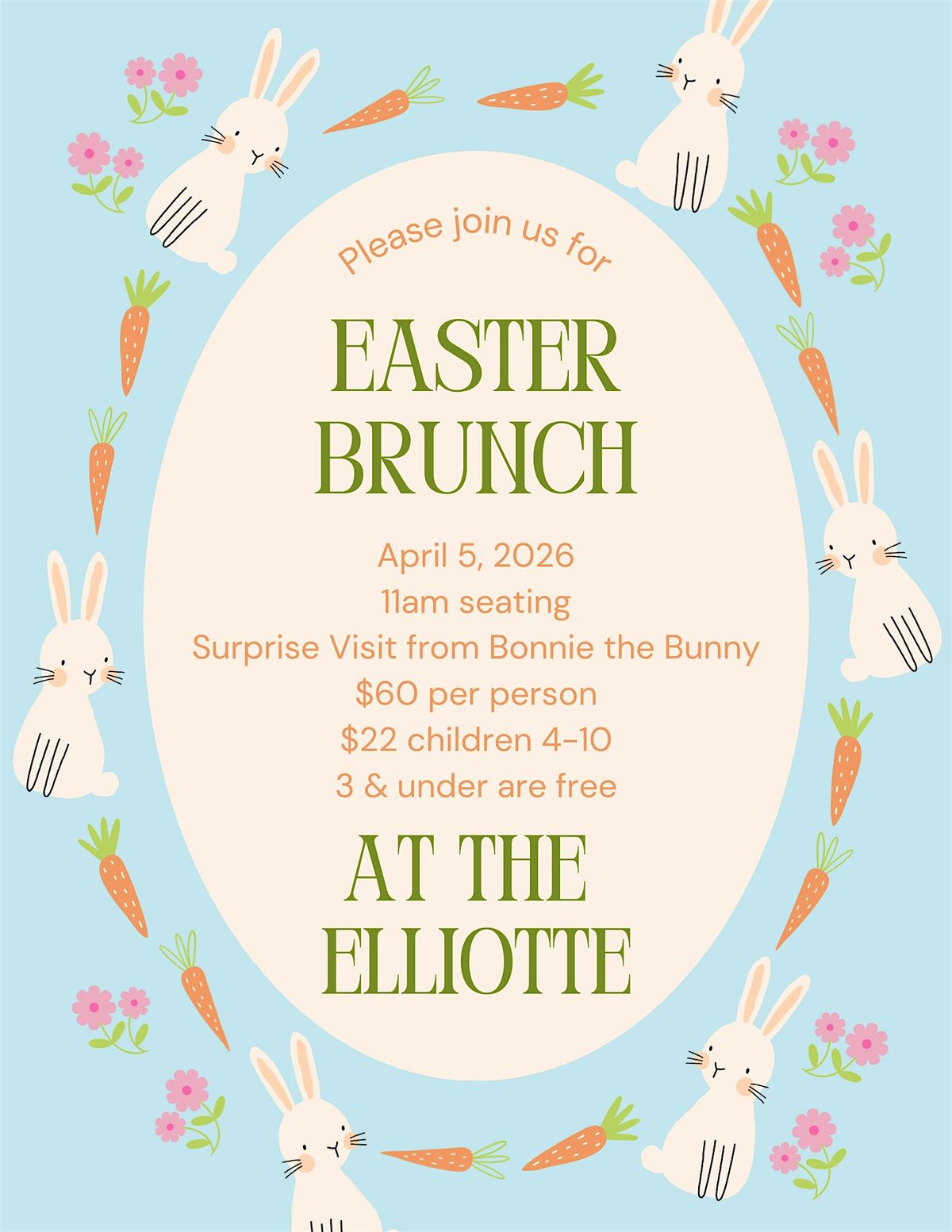 Join us for a beautiful spring celebration at The Elliotte this Easter. We’ve curated a brunch experience that blends elevated comfort dishes with a soft, garden-inspired atmosphere — the perfect way to gather with family and friends. Doors open at 11am and brunch will be ready for 11:30 for guests to enjoy. Bonnie the Bunny will also be making an appearance for her second year for photo ops with the family!