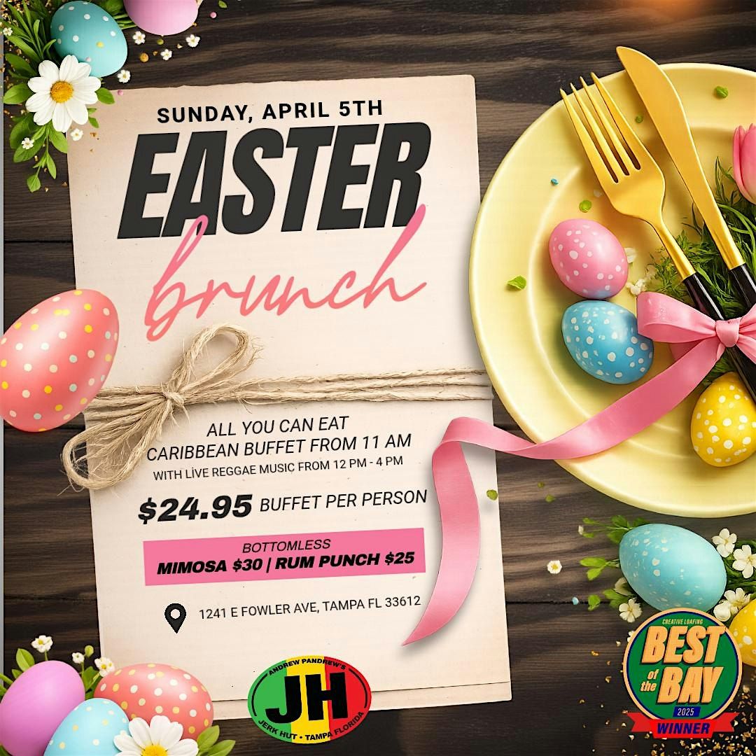 Celebrate Easter Sunday with flavor, vibes, and good company at Jerk Hut’s Easter Brunch Experience in Tampa! ✨