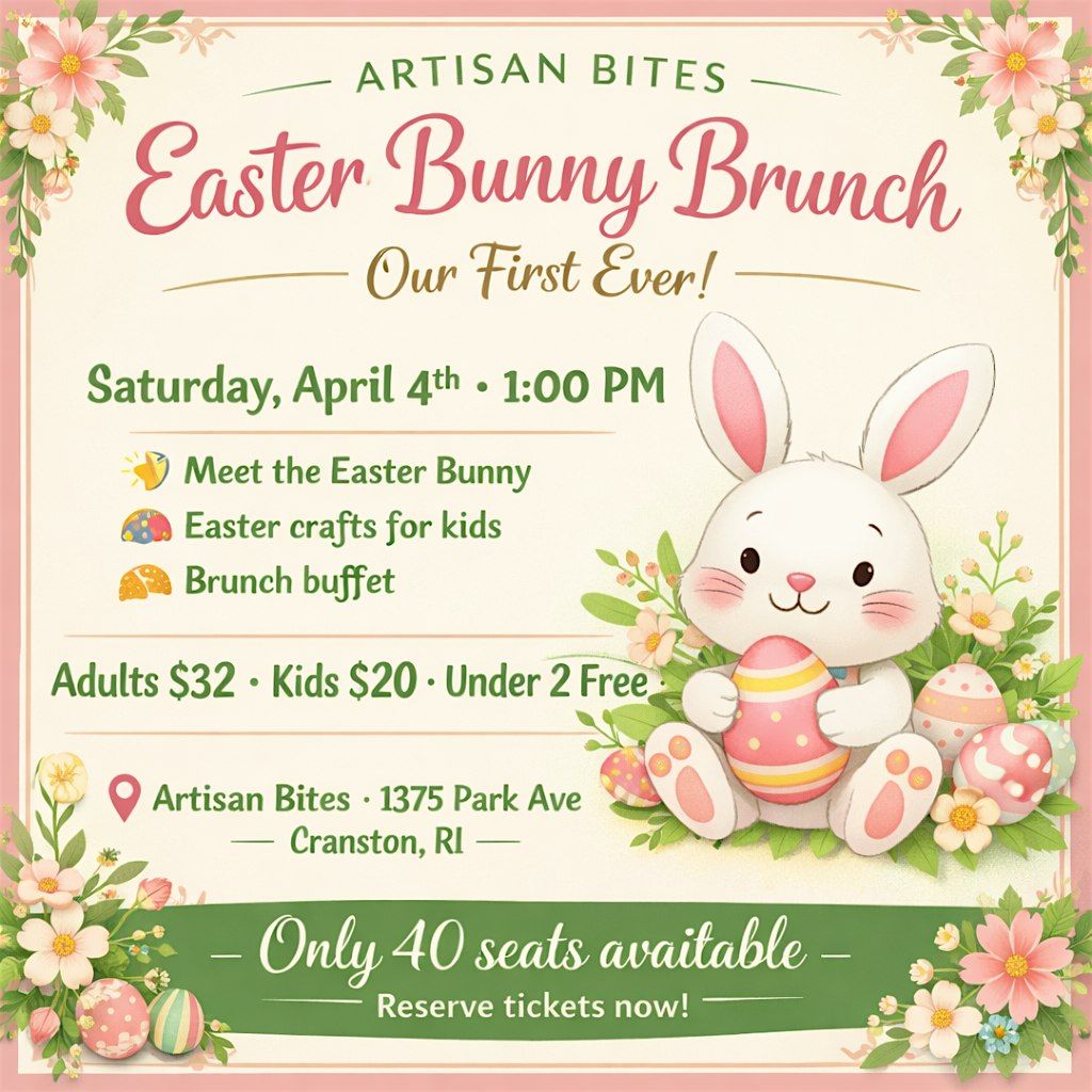 Join us at Artisan Bites for our first ever Easter Bunny Brunch, a fun and festive afternoon designed for families to celebrate the season together.