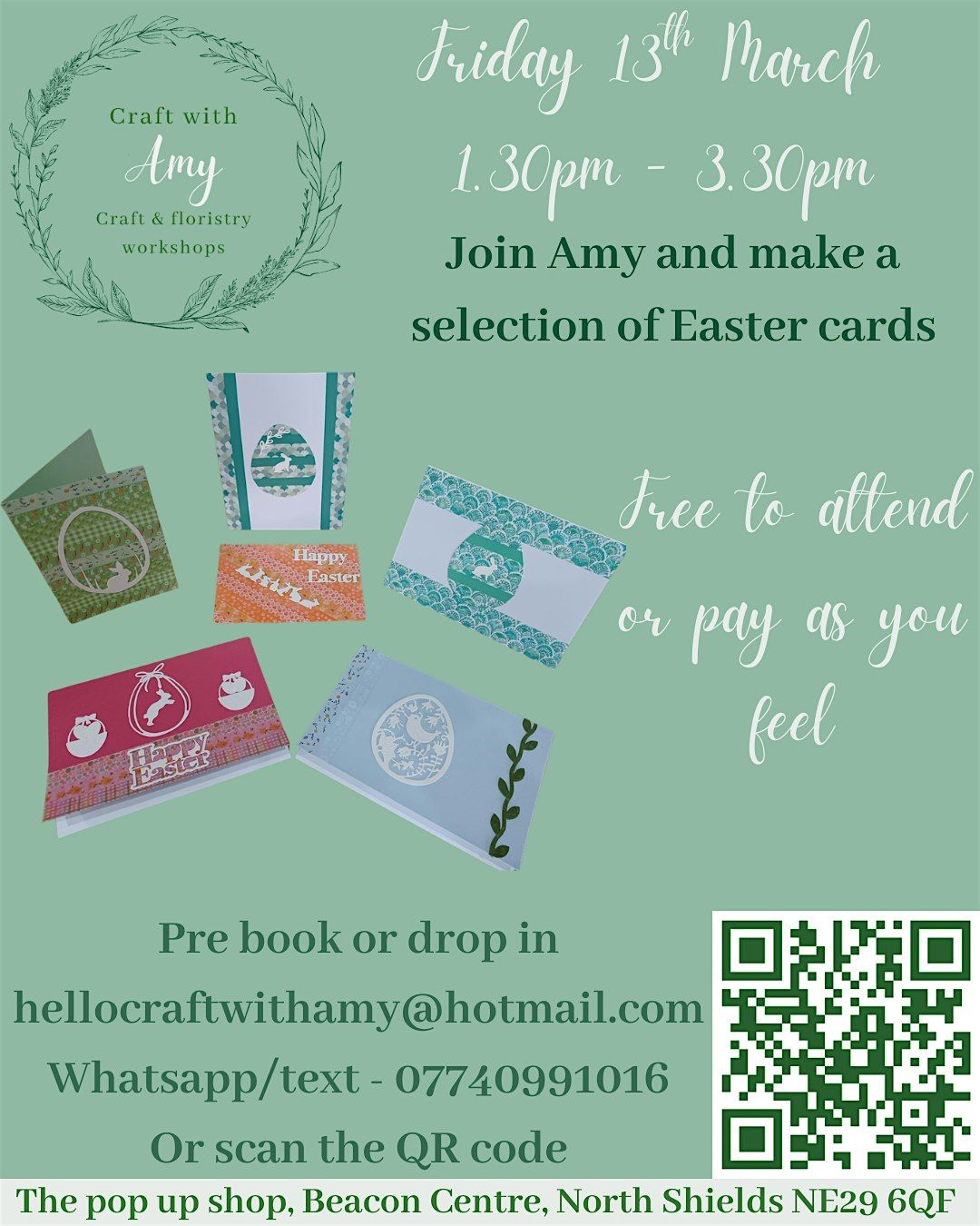 Amy will show you how to create Easter cards. The workshop is being held at the pop up shop - which was formerly the travel agentsAbout this Event