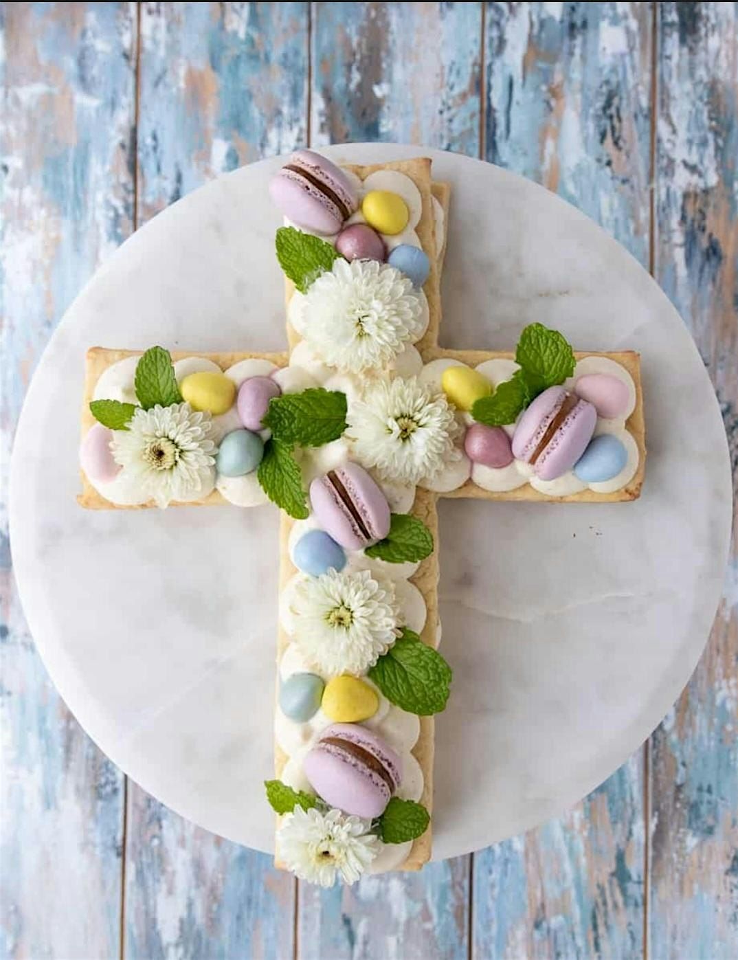 Celebrate the season of renewal with our Cross Cake Decorating Class! In this hands-on workshop, you’ll create a stunning cross-shaped cake adorned with elegant florals and delicate macarons, giving it that perfect spring vibe. Whether you’re celebrating a special occasion or simply want to learn new cake artistry, you’ll leave with a masterpiece and a smile. Come enjoy the joy of decorating with fresh spring colors and sweet treats—sign up now and bring a touch of springtime beauty to your baking!