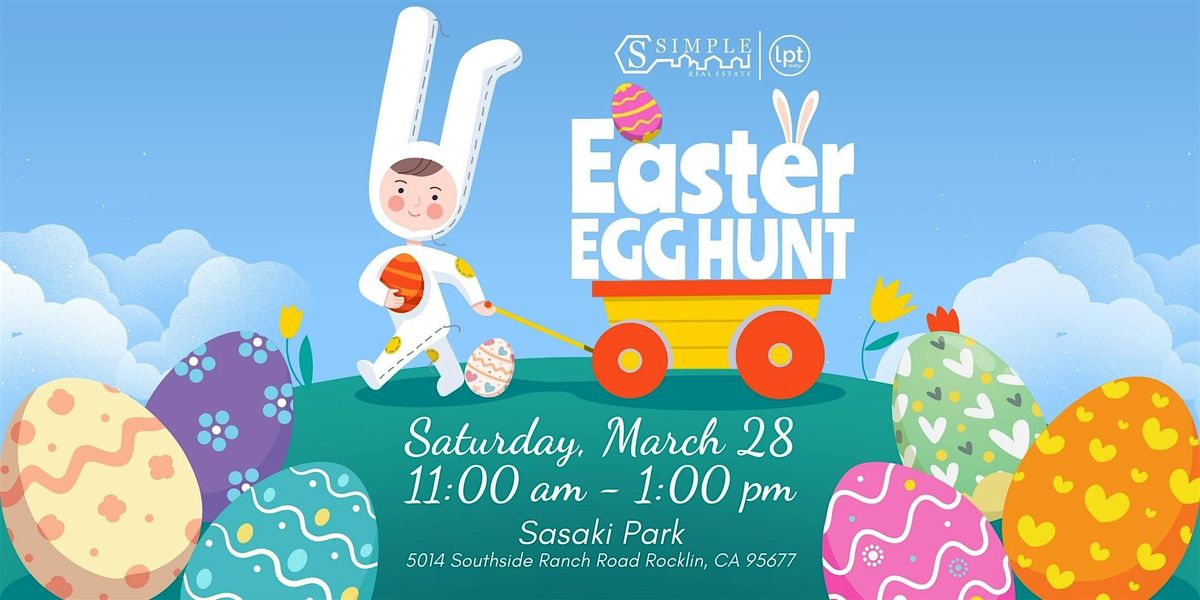 Simple Real Estate invites you to our 4th Annual Easter Egg Hunt on Saturday, March 28th, from 11:00 AM to 1:00 PM at Sasaki Park in Rocklin.