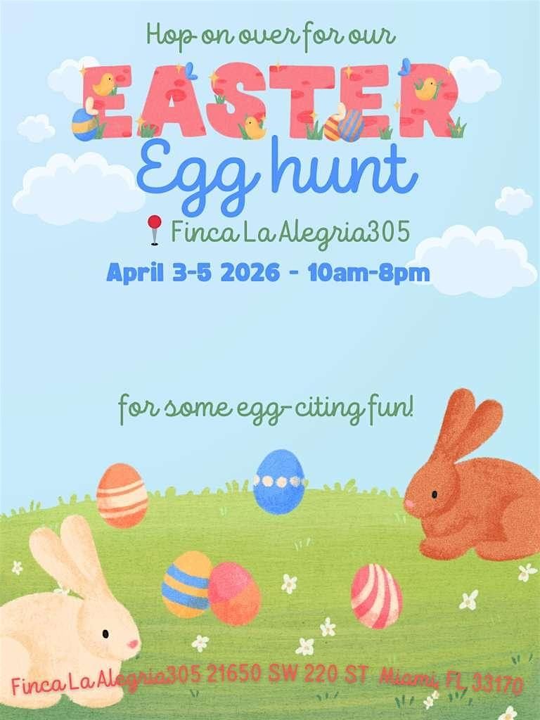 ¡Prepárate para un día lleno de diversión en Finca La Alegría305! Únete a nosotros en una increíble búsqueda de huevos de Pascua donde niños y adultos podrán buscar huevos coloridos y disfrutar de un rato agradable al aire libre. Trae a tus amigos y familiares para disfrutar de risas, sorpresas y grandes recuerdos en persona. ¡No te pierdas la emoción y la oportunidad de celebrar la Pascua con estilo!