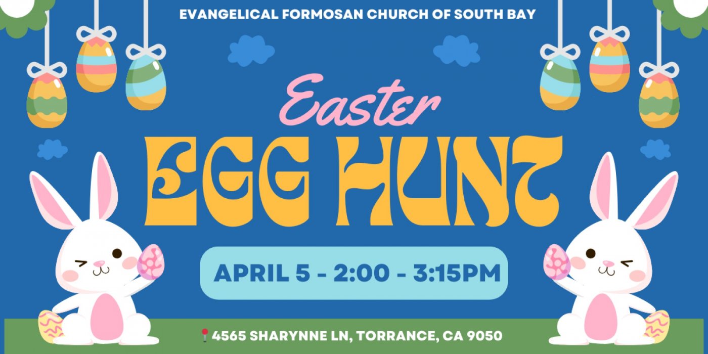 Evangelical Formosan Church of South Bay warmly invites families in the community to join our Easter Egg Hunt for children. Bring your kids for an afternoon filled with fun, laughter, and exciting activities.