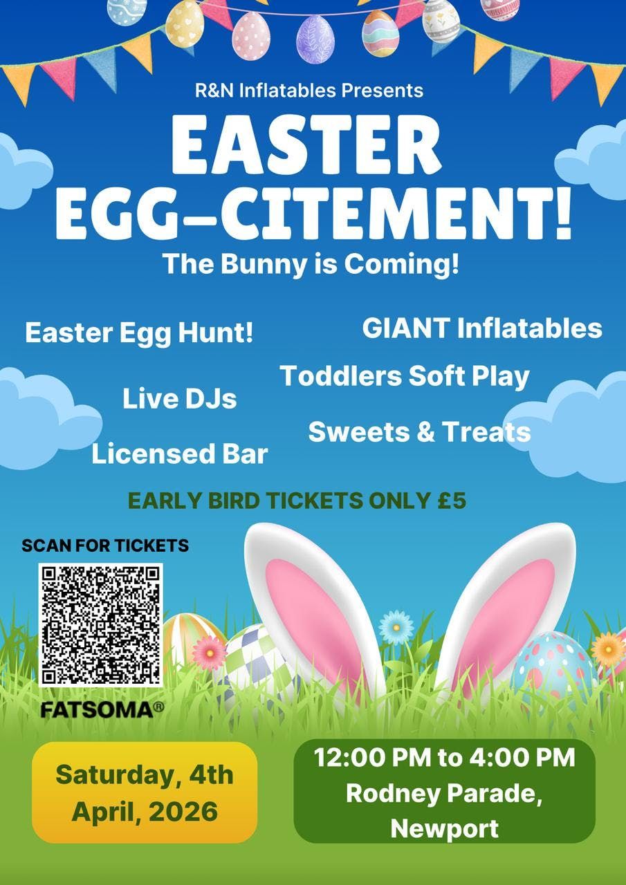 Our first event of the year is coming to Rodney Parade Easter Saturday 4th April 2026!Our huge selection of inflatables will be there with an Easter egg hunt for all the children .