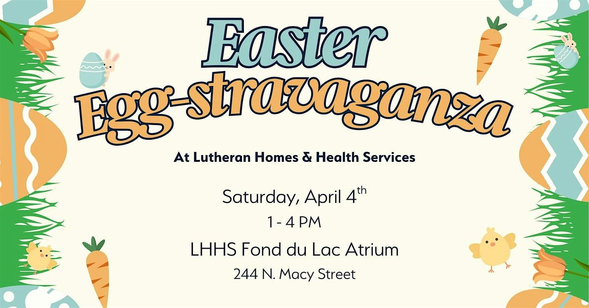 Calling all members of the Fond du Lac community: join us on Saturday, April 4th at Lutheran Homes and Health Services for an Easter Egg-stravaganza! There will be fun for the whole family: