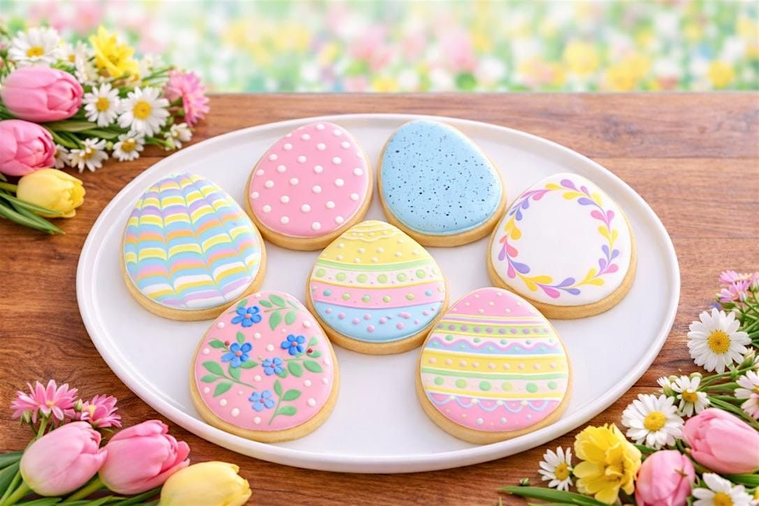 Decorate a set of your own joyful Easter Egg cookies with several royal icing styles and techniquies, each taught step-by-step. Take home your cookies to add to your bunny basket, or enjoy during your Easter gathering! $49pp. (Each adult ticket can accompany one child with a shared cookie set).