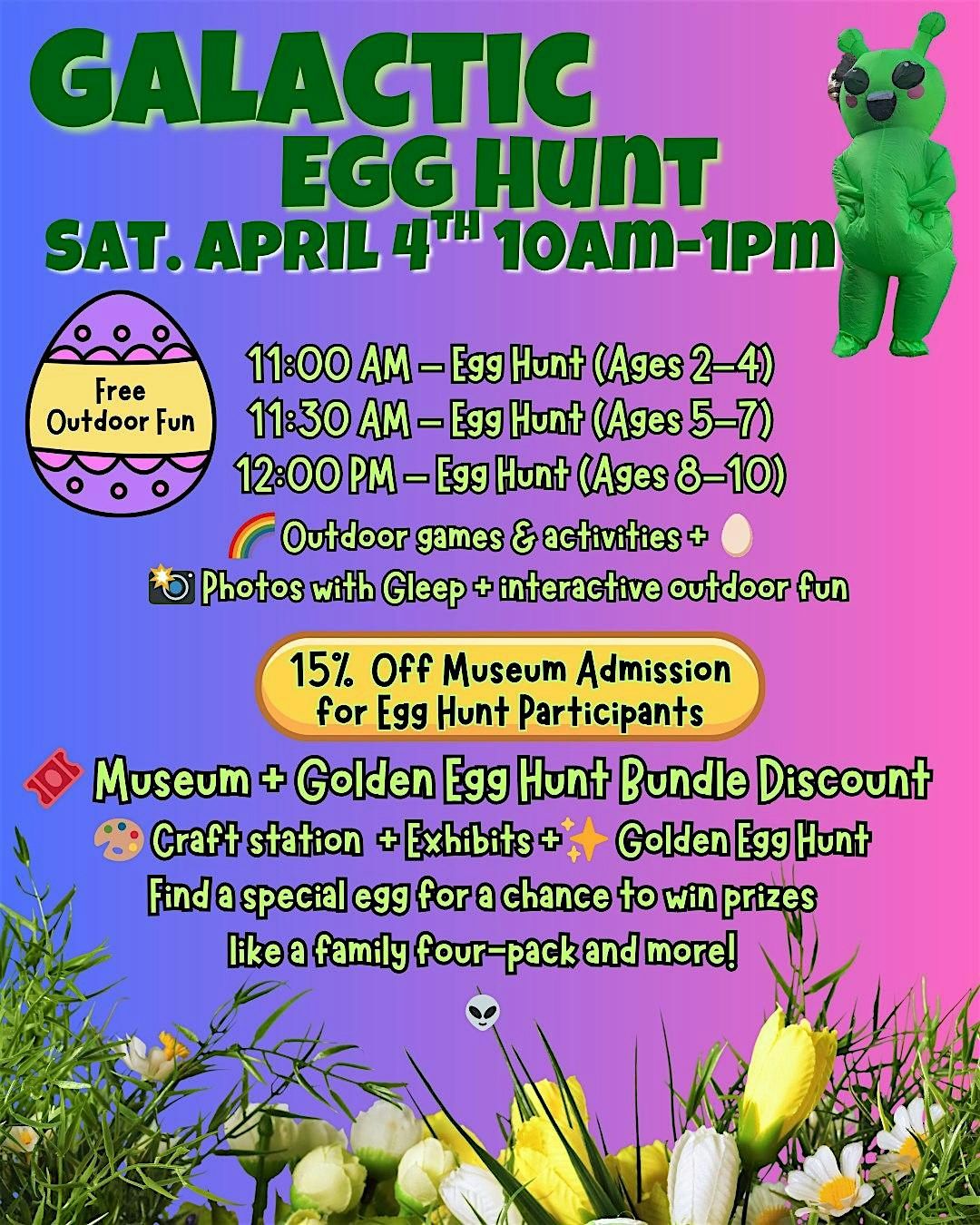 Step into a colorful, otherworldly celebration at Seismique with our Galactic Egg Hunt!