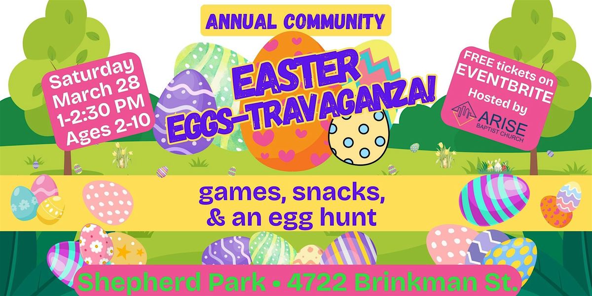 Join us Saturday, March 28, at Shepherd Park for games, prizes, and an egg hunt for kids ages 2-10!
