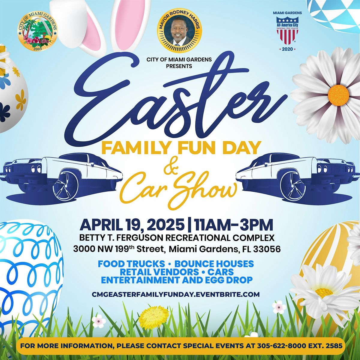 Join the City of Miami Gardens for Easter Family Fun Day on April 19, 2025, from 11 AM to 3 PM at Betty T. Ferguson Complex! Enjoy food trucks, bounce houses, retail vendors, entertainment, and an egg drop. Fun for all ages! Info: 305-622-8000 ext. 2585.