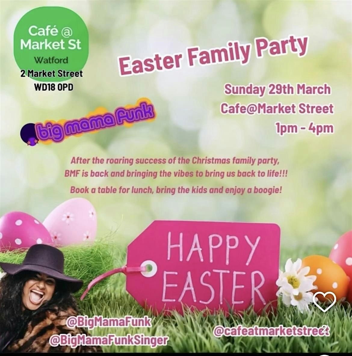 Pre-Easter kids and family Party with great lunch options and live music by famous singer BigMamaFunk Pritee!