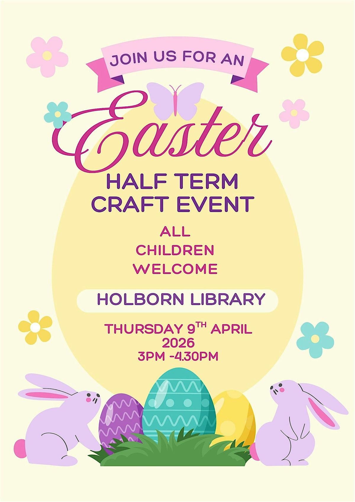 Celebrate the Easter half term with a fun and creative craft session at Holborn Library! Children are invited to drop in and enjoy a variety