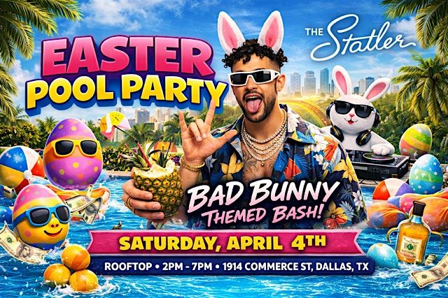 Step into an elevated Easter experience at our Bad Bunny–inspired Rooftop Pool Party 🐰✨