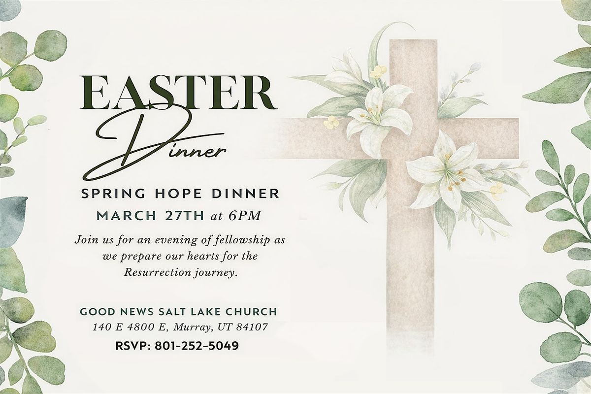 We warmly invite you to a special Easter Spring Hope Dinner at Good News Salt Lake Church.