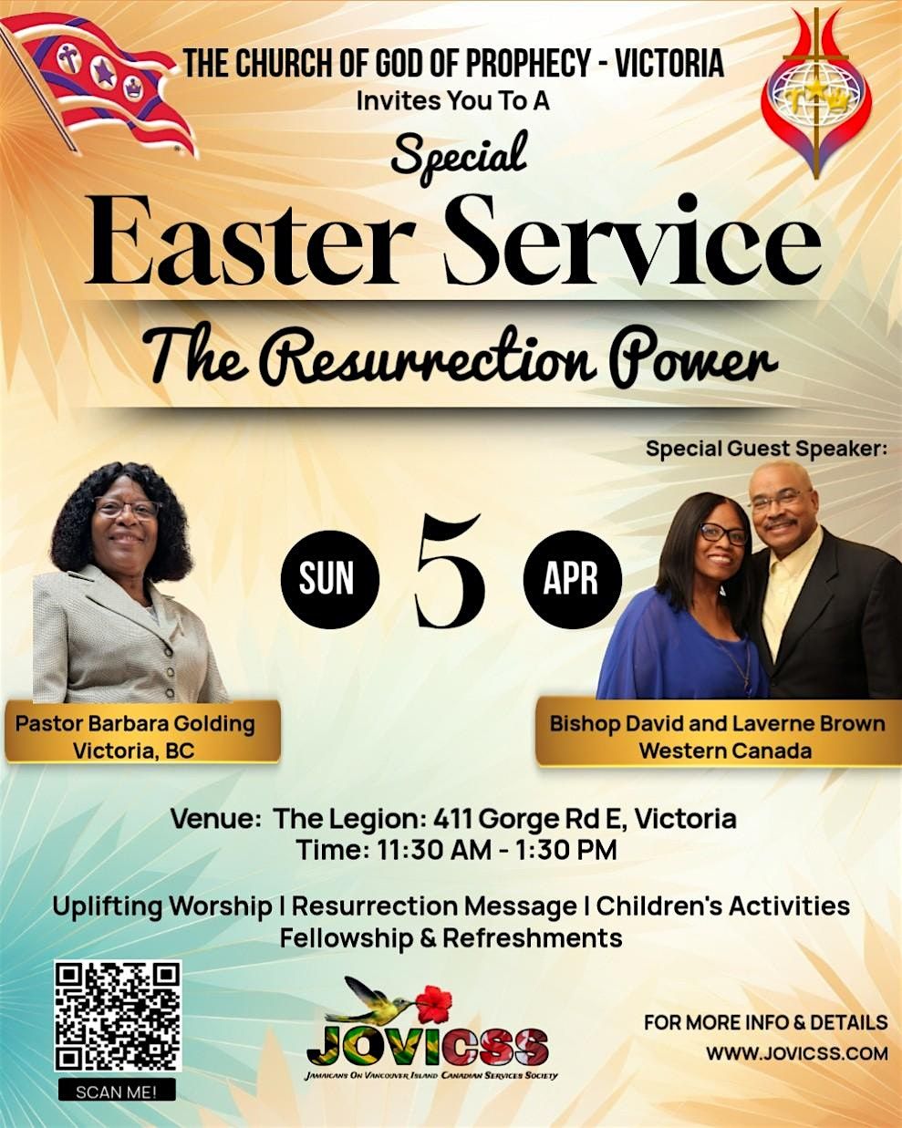 Join us for a Special Easter Service hosted by the Church of God of Prophecy (COGOP) – Victoria in partnership with Jamaicans On Vancouver Island Canadian Services Society (JOVICSS).