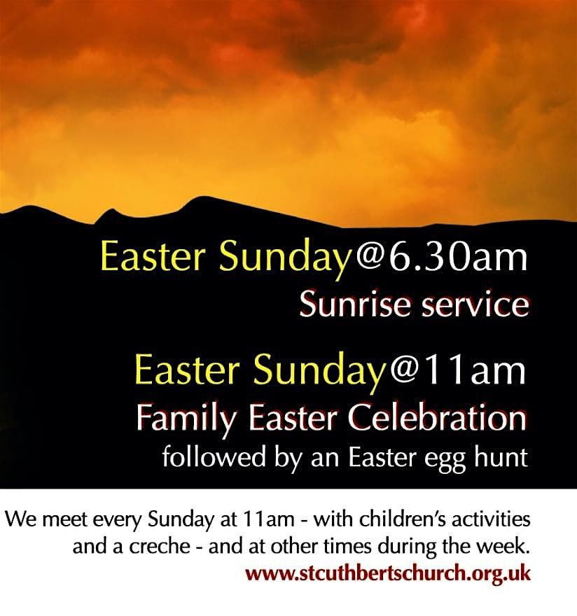 St.Cuthbert's Church offers a Easter Sunday Sunrise Service at 06.30 a.m. At 11.00 a.m. we celebrate the Family Easter Celebration.