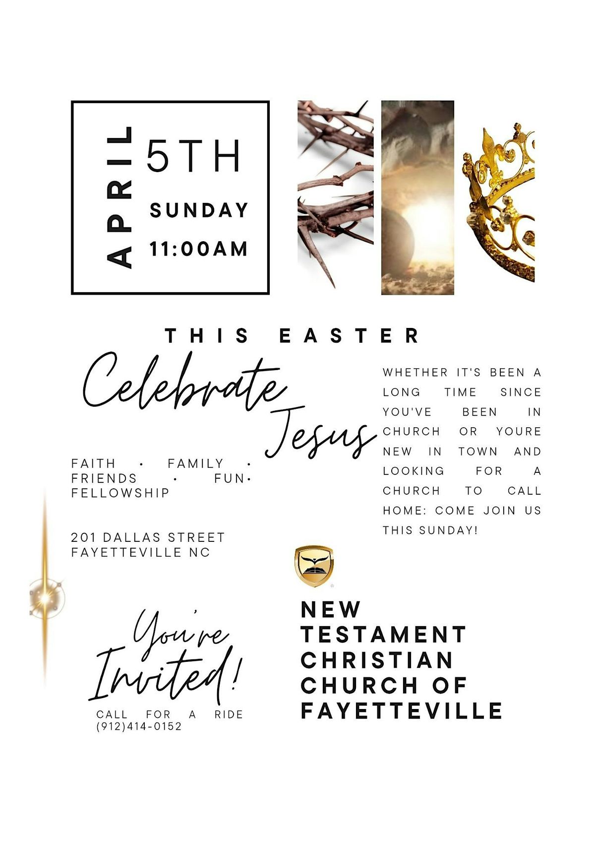 Join us for a special Easter celebration at the New Testament Christian Church of Fayetteville, NC! We’ll gather on April 5, 2026 at 11:00 AM (Eastern Daylight Time) to celebrate together with worship, joy, and community. Bring your family and friends for an uplifting and warm experience. Can’t wait to see you there!